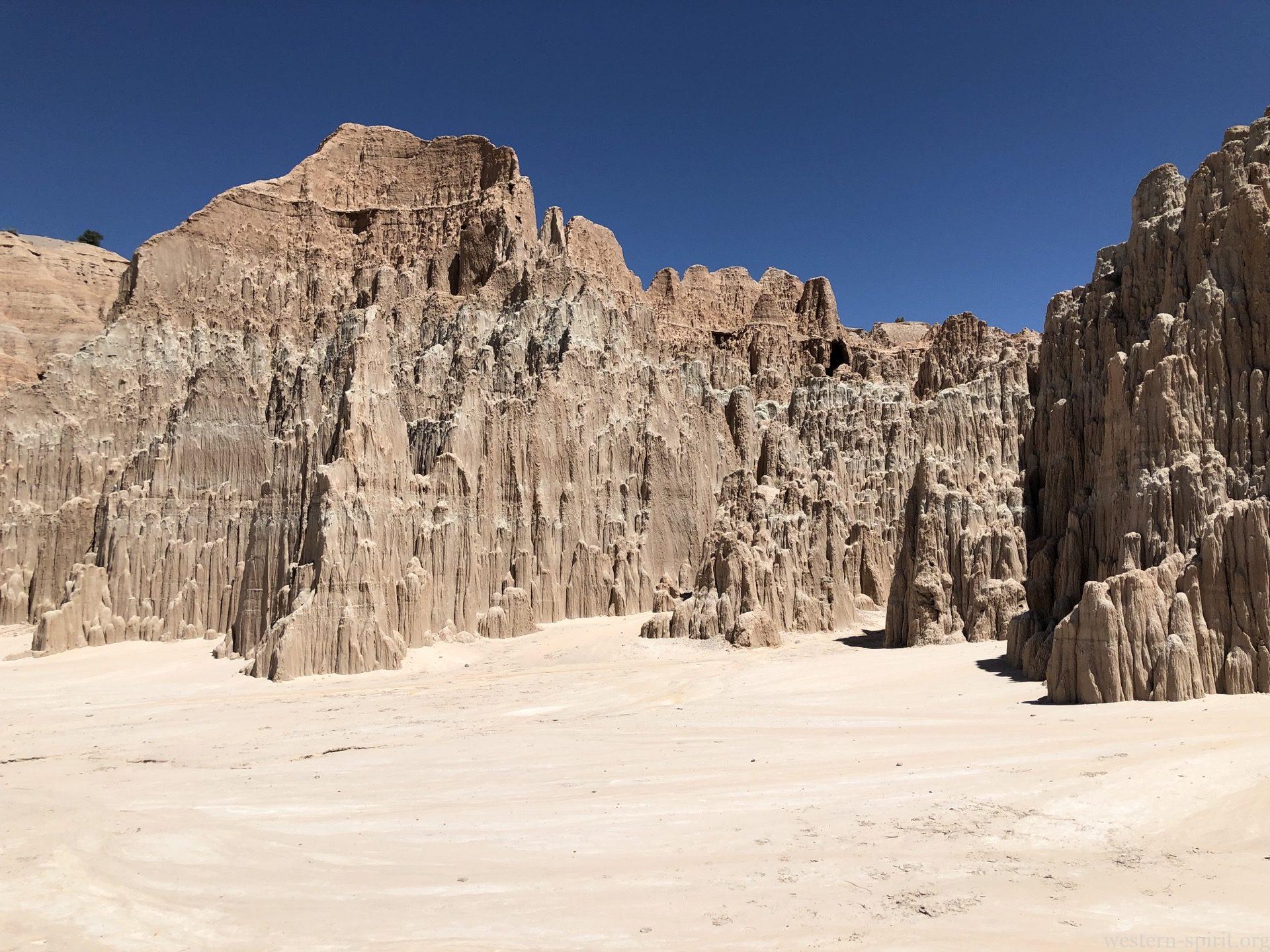 The drive from St. George toward Ely was a relaxing highway drive. We passed what appeared to be a cider cone and found a town which featured a pie store with a nightmare fuel mascot. Our plan was to reach Pioche, NV for lunch and do some exploration there. We took a pitstop along the way at Cathedral Gorge State Park. It turns out, Cathedral Gorge is a great little park and well worth the stop, even if it is to enjoy your lunch.
